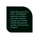 Sie drucken Ihre Zeitung mit Altpapier? Verwenden Sie unseren Einklinker und zeigen der Leserschaft, wie nachhaltig die Zeitung gedruckt wird.