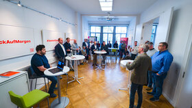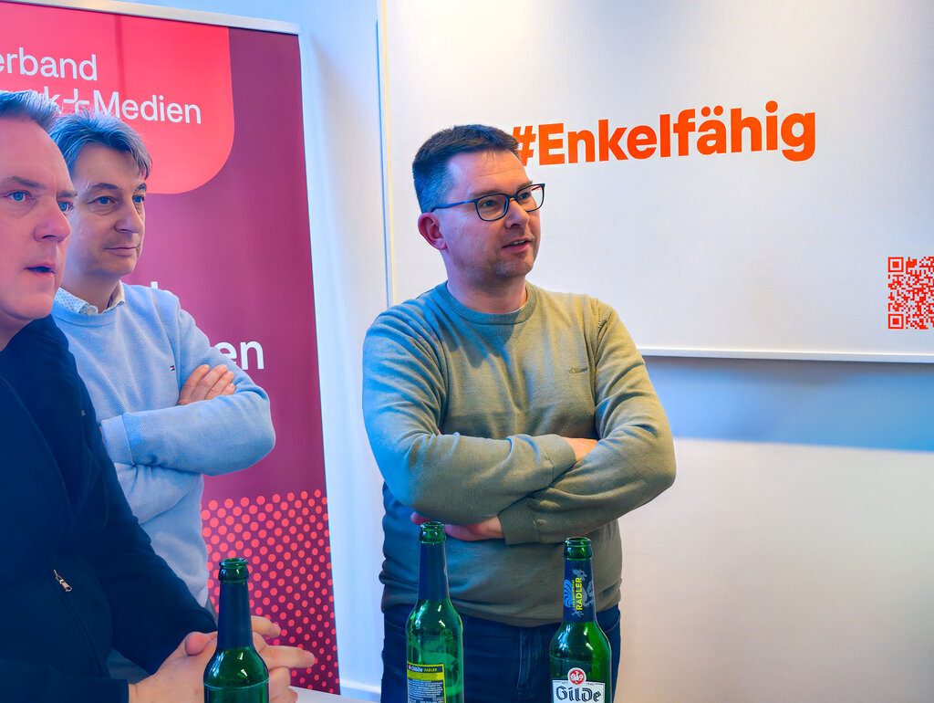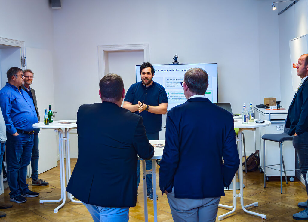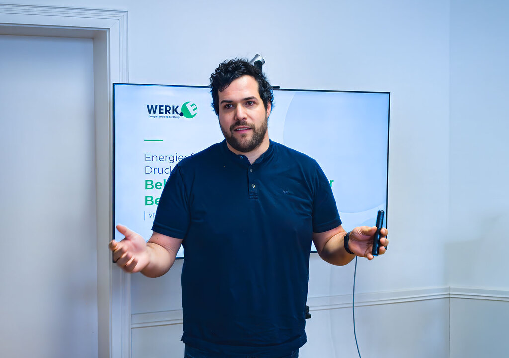 Ein inhaltlicher Höhepunkt des Abends war der Impulsvortrag von Sebastian Hund (WERK.E Energie-Effizienz-Beratungs GmbH & Co. KG) zum Thema Energieeffizienz in der Druck- und Papierindustrie. Dabei wurde deutlich, dass steigende Energiekosten, verschärfte gesetzliche Rahmenbedingungen sowie wachsende Anforderungen entlang der Lieferkette das Thema zunehmend in den Fokus von Unternehmen rücken. Energieeffizienz ist damit längst nicht mehr nur eine Frage der Kostensenkung, sondern ein strategischer Hebel für Wettbewerbsfähigkeit und Zukunftssicherung .